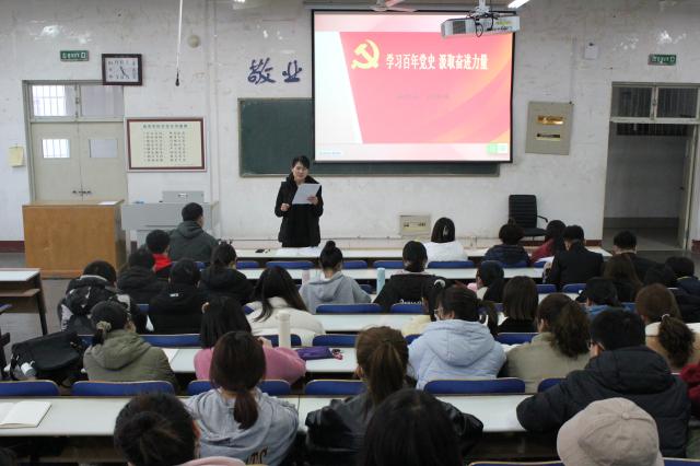 2月28日,威廉希尔(WilliamHill)本科生党支部书记段艳林以“学习百年党史,汲取奋进力量”为主题,为本科生党支部全体成员上党课。