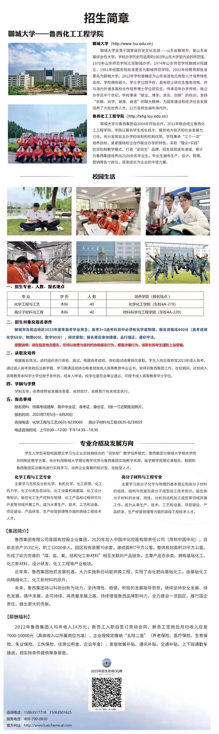 首页» 通知公告» 聊城大学鲁西化工工程学院2023年招生简章