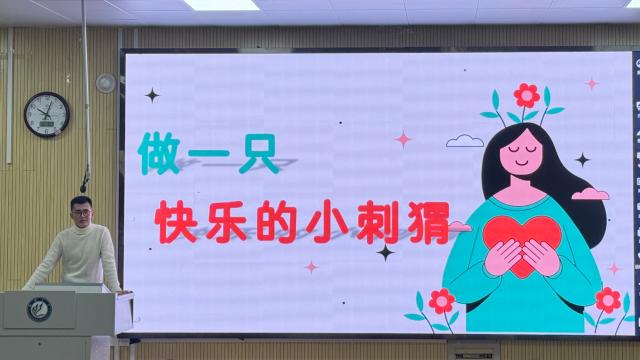 张文澍以视频为媒介,围绕“做一只快乐的小刺猬”,从“保持现状”、“拔掉尖刺”、“为自己准备一件外套”三个方面为同学们展开讲解,他表示,“节能模式”在抵挡风险的同时也屏蔽了世界的美好,指出生活中除竞争与压力外,也有美好的爱情,真挚的友情及温暖的师生情,需要我们舒展开身心,欣然接受它们。借助日常事例,张文澍向同学们介绍“刺猬外套”在不同情境下代表的不同含义,鼓励同学们掌握变通的思维方式,既有坚硬的保护自己的“刺”,又有漂亮的“外套”,积极参与学校组织的各项活动,主动与老师和其他同学沟通,在交往中促进自身全面发展。活动最后,同学们纷纷表示,通过本次心理学科普讲座,他们对自我认知与人际交往有了更加深刻的理解,今后将充分运用所学知识,以更加积极自信的心态拥抱未来的学习与生活。