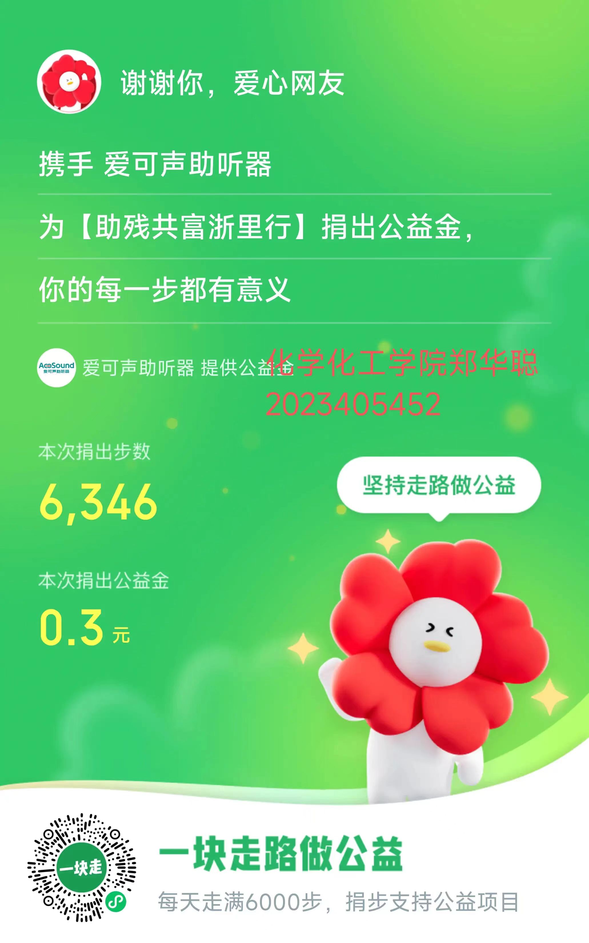 活动期间,同学们积极参与线上打卡,他们每天设定既有挑战性又可实施的步数目标,与同学相互监督、鼓励,使用手机、运动手环等设备记录下自己每天的步数,并通过微信小程序“一块走”和支付宝小程序“行走捐”进行步数捐赠,用实际行动诠释对社会困难群体的关爱。每一步行走,都承载着同学们的爱心与热情,温暖着社会的每个角落,让公益的力量在行走中传递。活动结束后,同学们纷纷表示,自己通过捐赠步数的方式,为需要帮助的人送去了一份温暖,为志愿公益奉献了一份力量,自己也在活动中体会到锻炼的乐趣,感受到爱心传递带来的喜悦,今后将持续关注社会公益事业,用实际行动践行奉献精神。