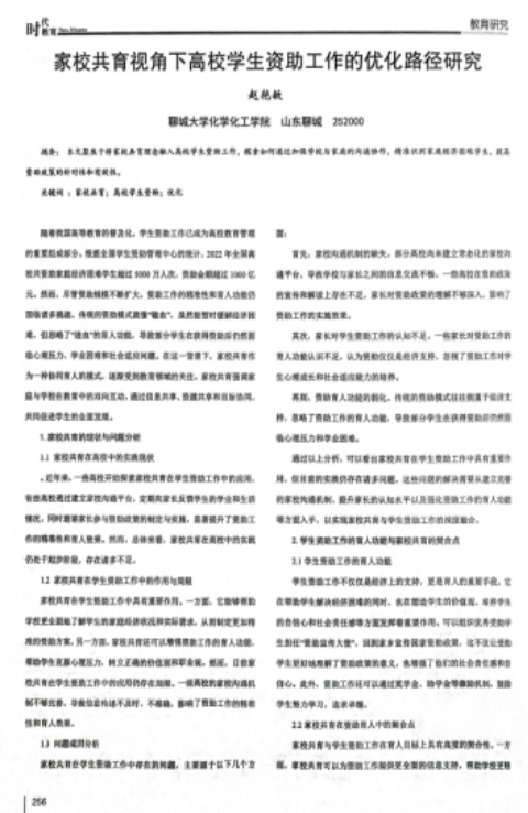 2.2025年8月,论文《家校共育视角下高校学生资助工作的优化路径研究》发表于《时代教育》2025年第8期(CN51-1677/G4)。