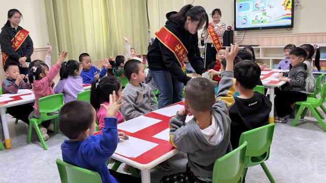 活动伊始,志愿者们播放一段关于节约用水的动画视频吸引小朋友们的注意,唤起孩子们节约用水的意识,并通过对世界节水日的介绍,引导小朋友们知道如何节约用水,养成珍惜水源的良好习惯。志愿者通过与小朋友们进行摸箱互动小游戏,带领小朋友们进一步了解世界节水日的信息,帮助小朋友们掌握更多的节水知识,并引导小朋友列举生活中浪费水源的例子以及改正方法。小朋友们积极讨论,表示不关水龙头、用大量水冲洗蔬菜瓜果等都是浪费水资源的现象,志愿者鼓励小朋友们要在生活中做力所能及的小事节约用水,保护水资源。最后,志愿者和小朋友们一起绘画节水护水的手抄报,用来张贴宣传节约用水的良好习惯。