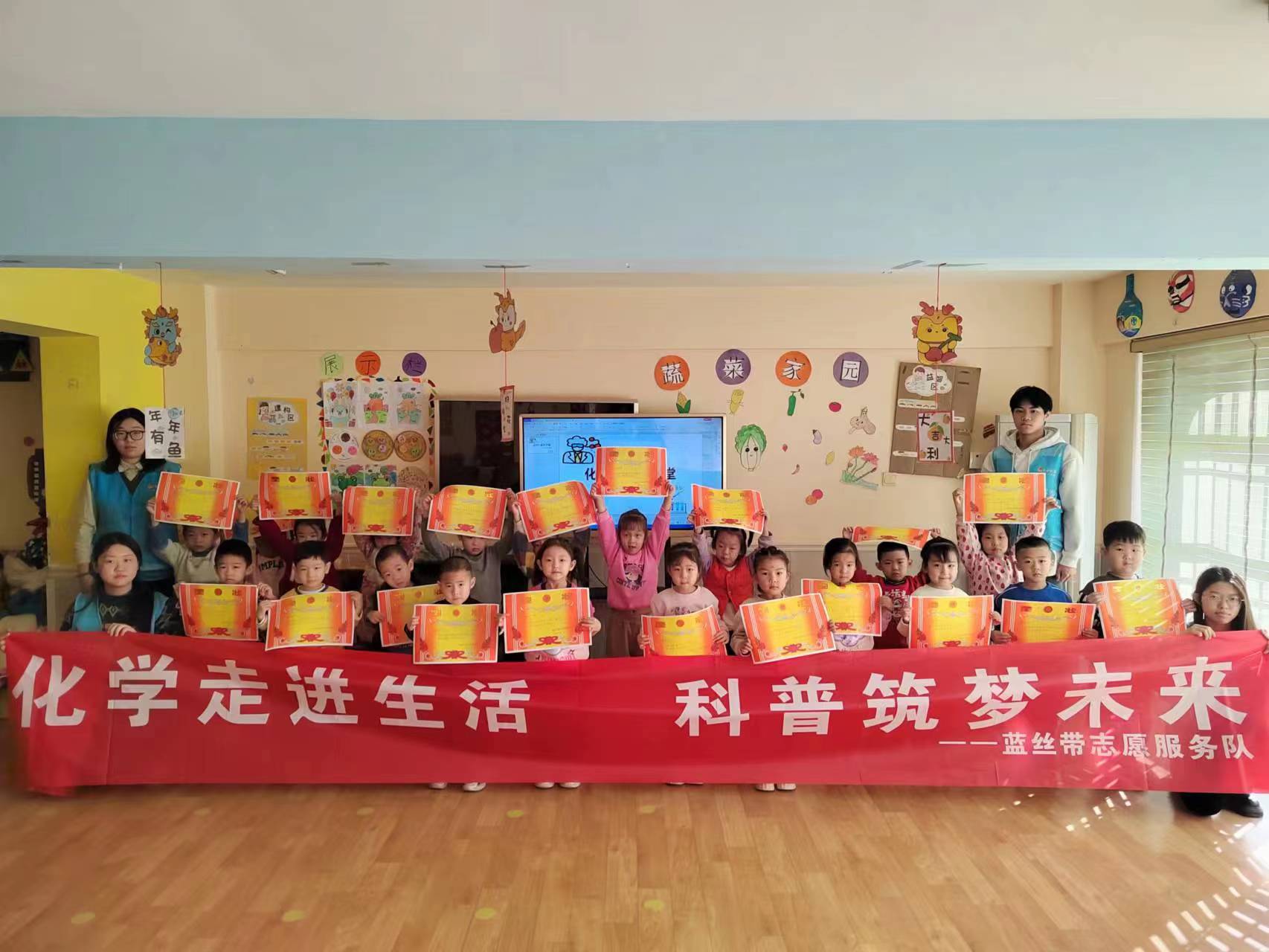 解析化学奥秘,普及科学知识。为向小朋友们普及日常生活中的化学知识,让他们理解化学现象蕴含的原理,激发小朋友们对化学的好奇心和求知欲,1月15日,威廉希尔(WilliamHill)蓝丝带志愿服务队于聊城市东昌府区阳光宝贝幼儿园举办“化学走进生活,科普筑梦未来”宣讲活动。